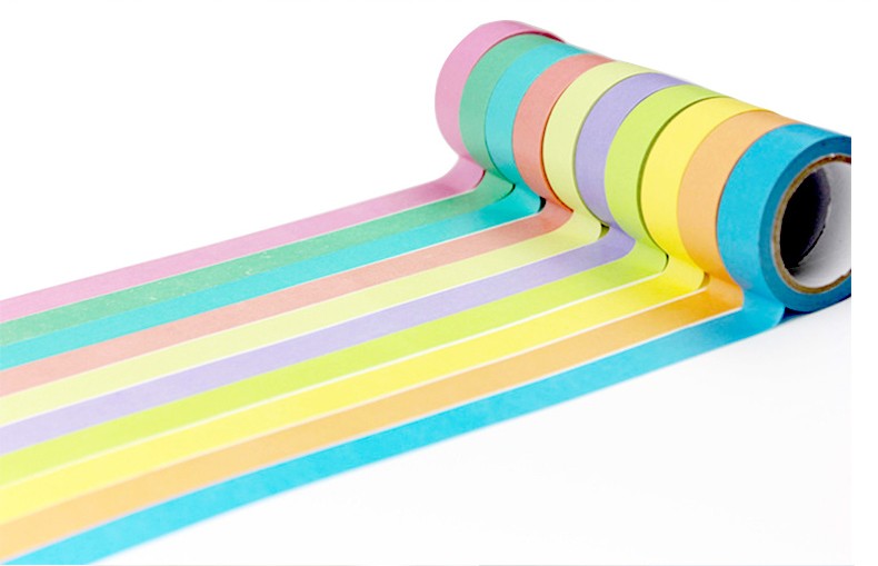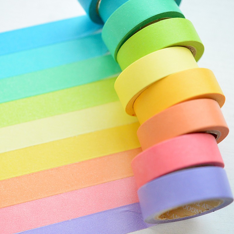 彩色和纸胶带以印刷和纸为基材,经过加温均匀涂抹丙烯酸压敏胶而成。初粘力、粘性适中、并具有良好的持粘力,对大大都的平滑外貌、弯曲或转角处有很好的贴附性。